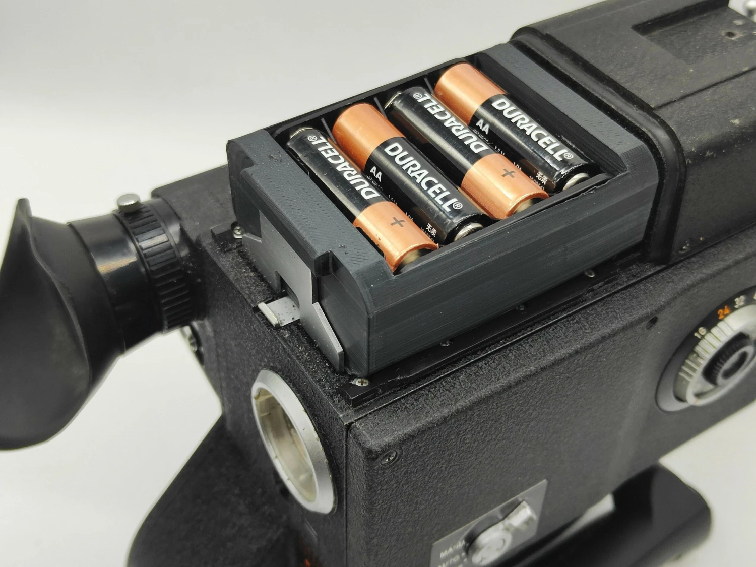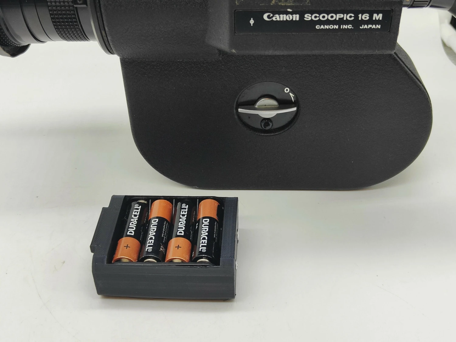 This is an 8x AA battery holder to replace your tired old S-12 rechargeable pack for the Canon Scoopic 16M / MN / MS. Note that this does not fit the original (grey) Scoopic 16.