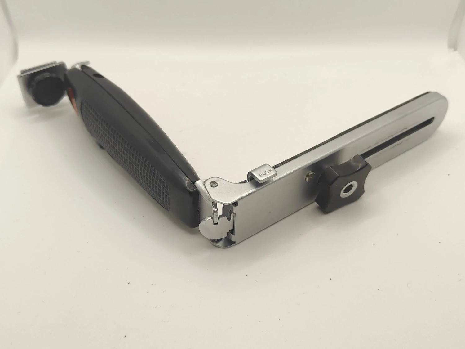 Designed to attach to the bottom of your camera, and provide an elevated flash shoe (not a hot shoe) to the side of the camera.