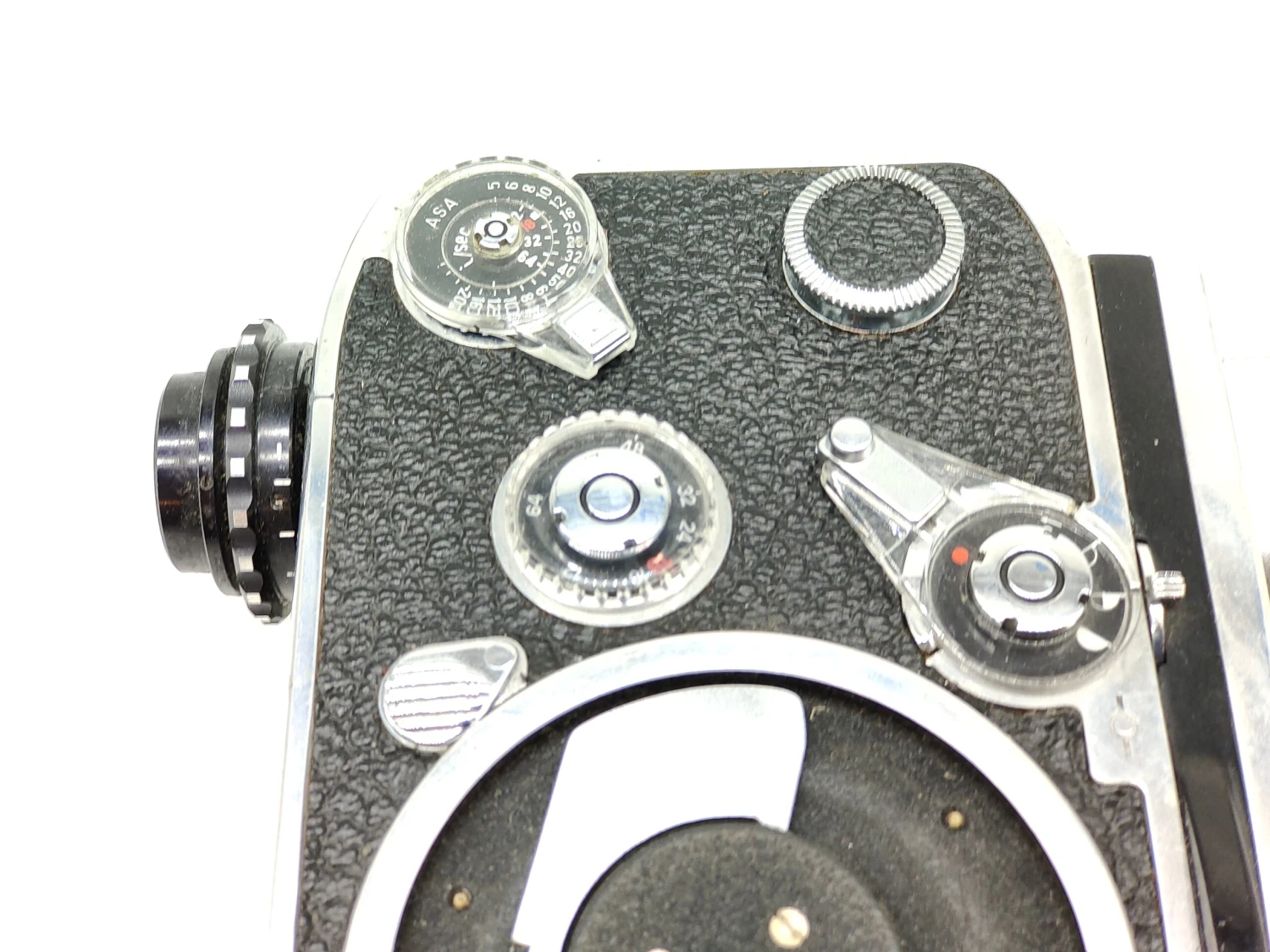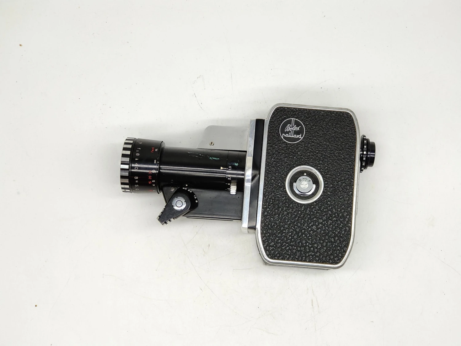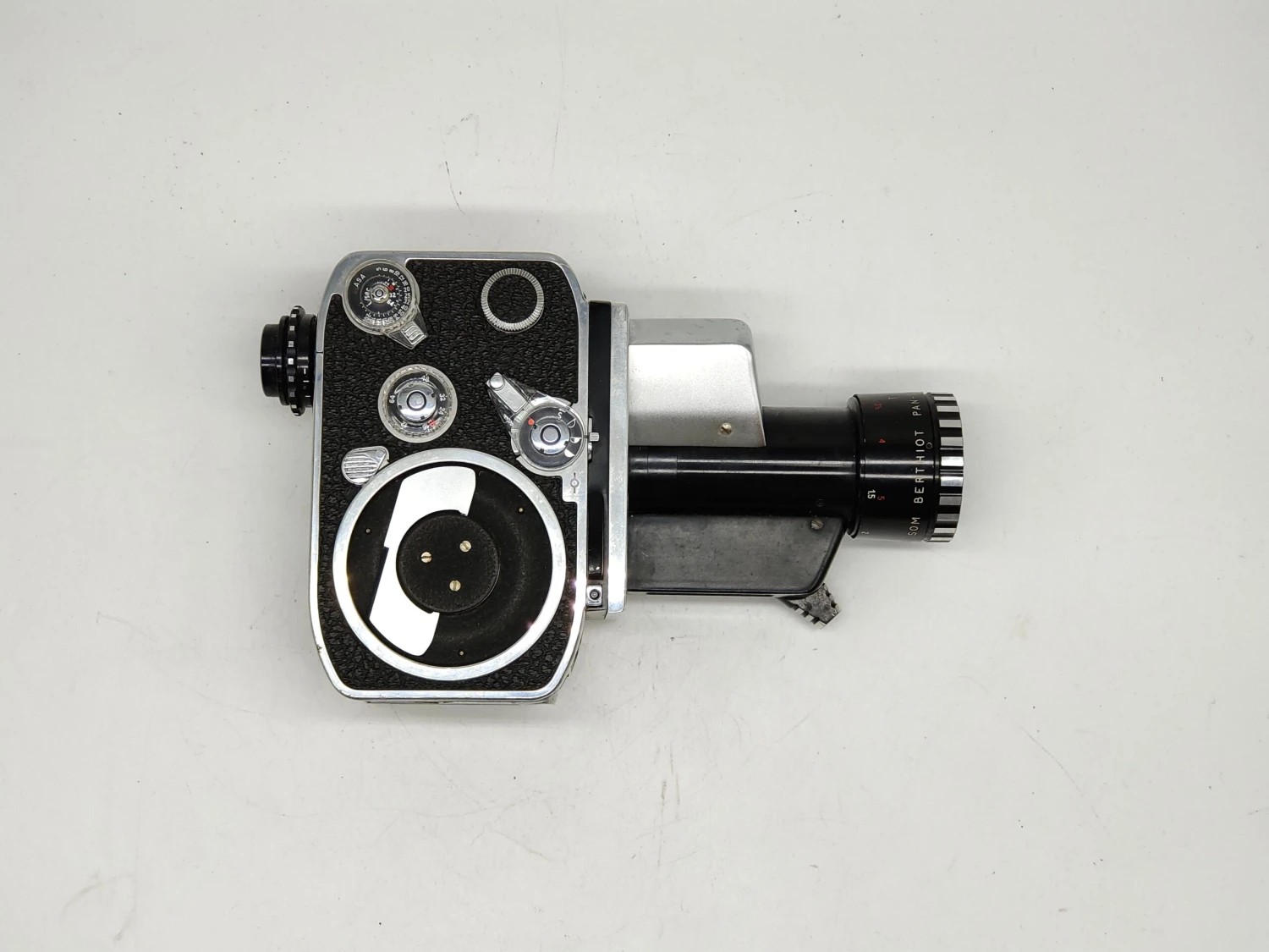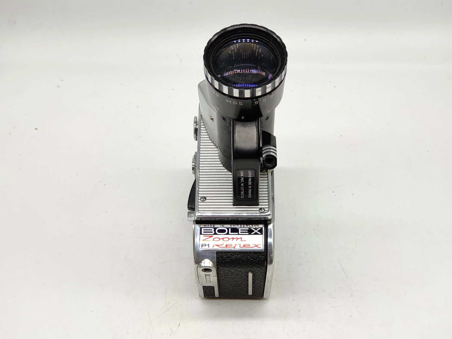 This is a rare example of the Bolex P1. Has a zoom lens and built-in light meter.