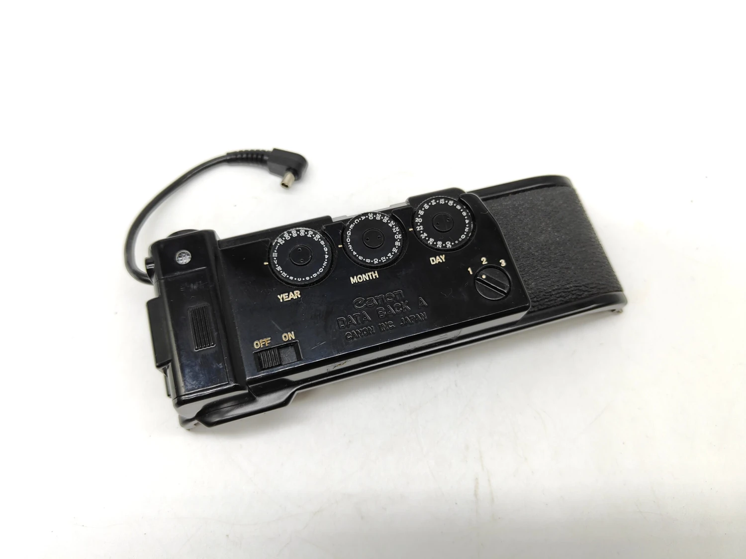 This is a simple data back that can print dates, numbers and roman numerals in the corner of your photos. Compatible with Canon A-1, AE-1, AT-1, AV-1, and AE-1 Program cameras