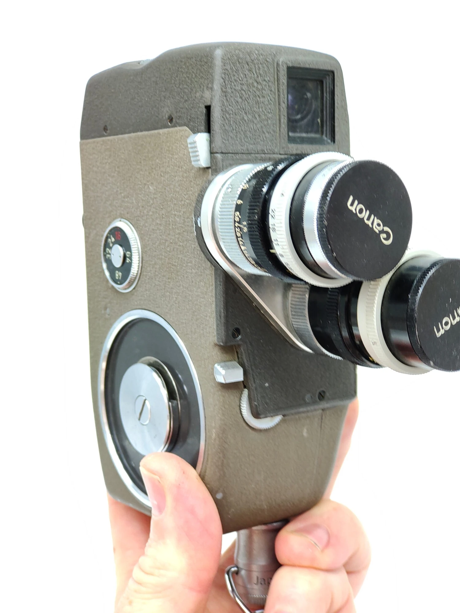 Note that this camera takes Double-8 film (not Super 8) which is rather a specialist format. We have not film tested this camera so can’t guarantee fully, but the meter and clockwork drive seem to work OK. See the video for the clockwork drive operating.