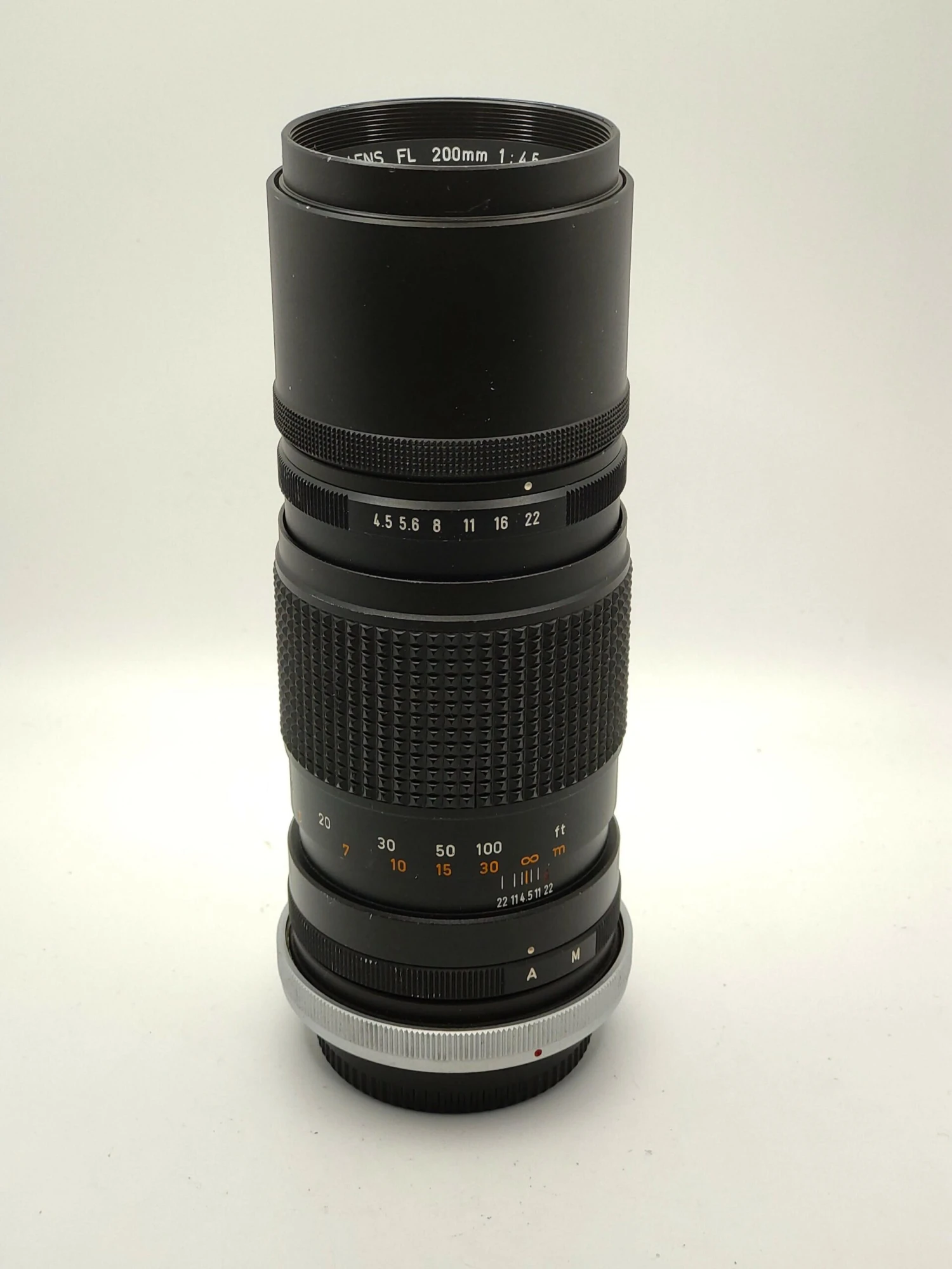 This is a Canon FL 200mm / f4.5 telephoto lens in very good condition.
