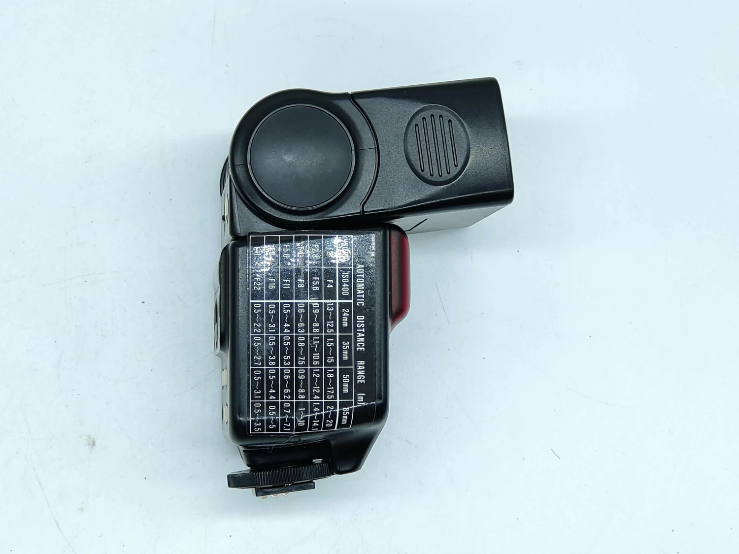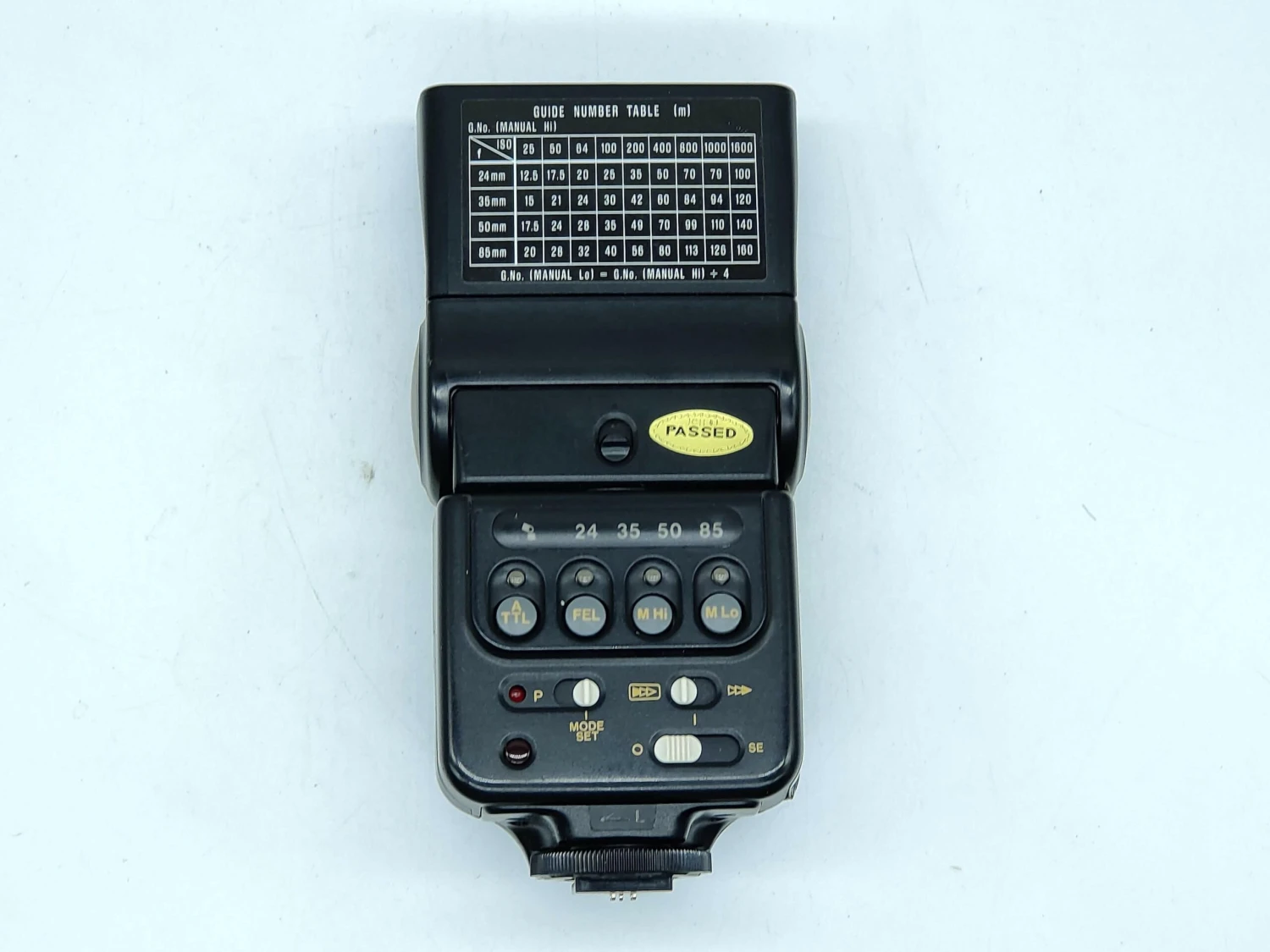 This is the flash that Canon designed specifically for the Canon T90 and is a very advanced unit. Has TTL (through the lens) flash metering, zoom control for 24mm – 85mm lens and many other features.