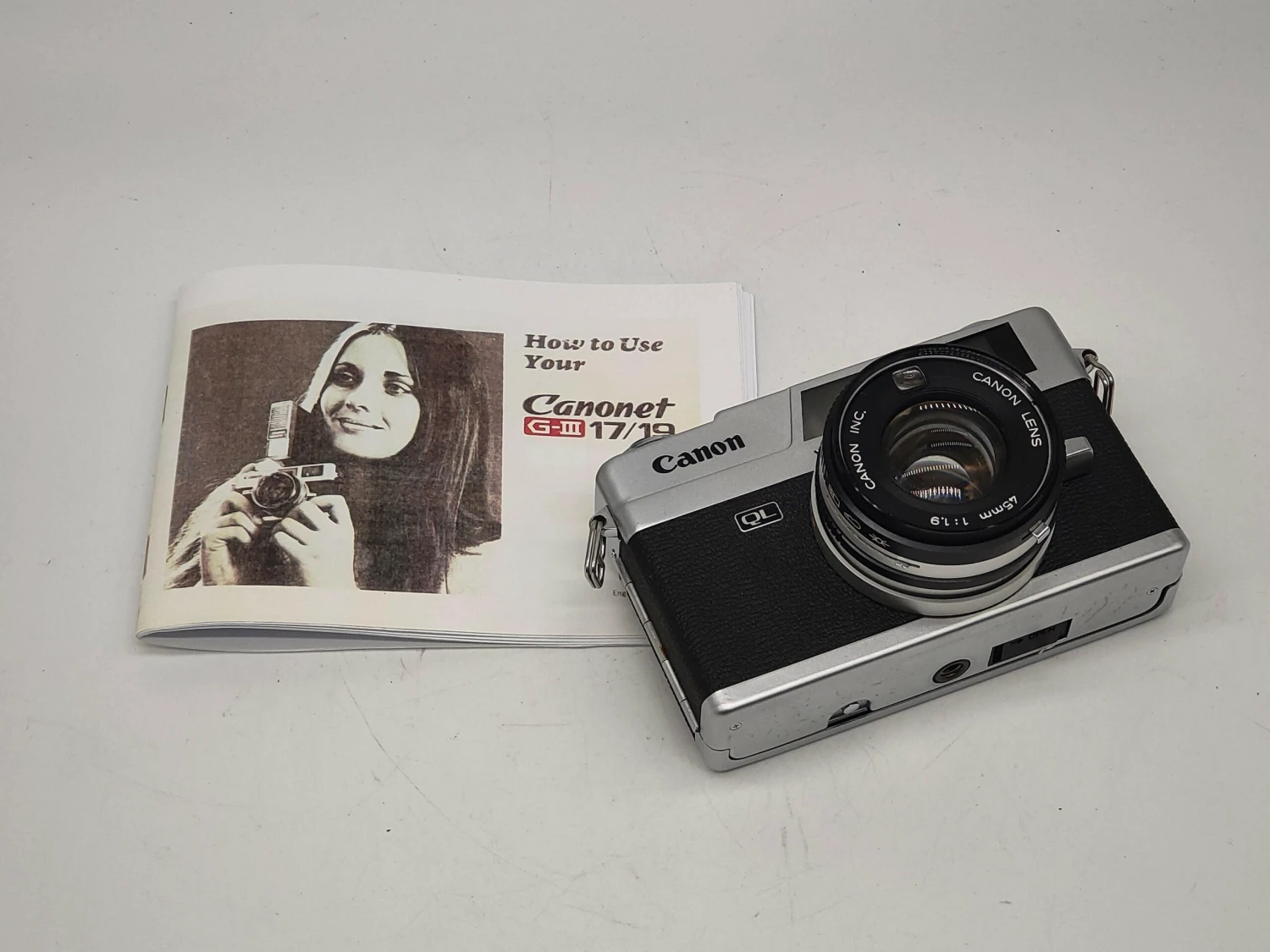 The first of the Canonet range to introduce Canon’s excellent quick film loading (QL) system it is powered by a single SR44 battery (to power the meter) however the aperture and shutter are fully mechanical.