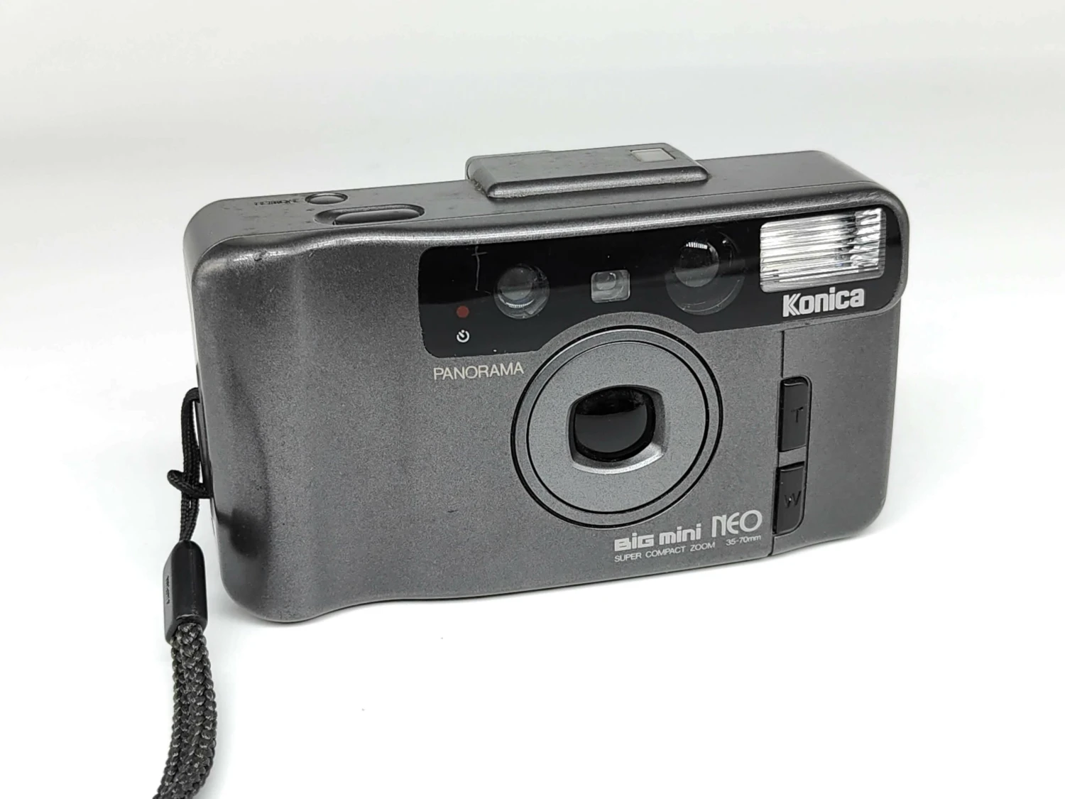 Has an LCD screen on the back displaying the film counter, flash mode and battery status.