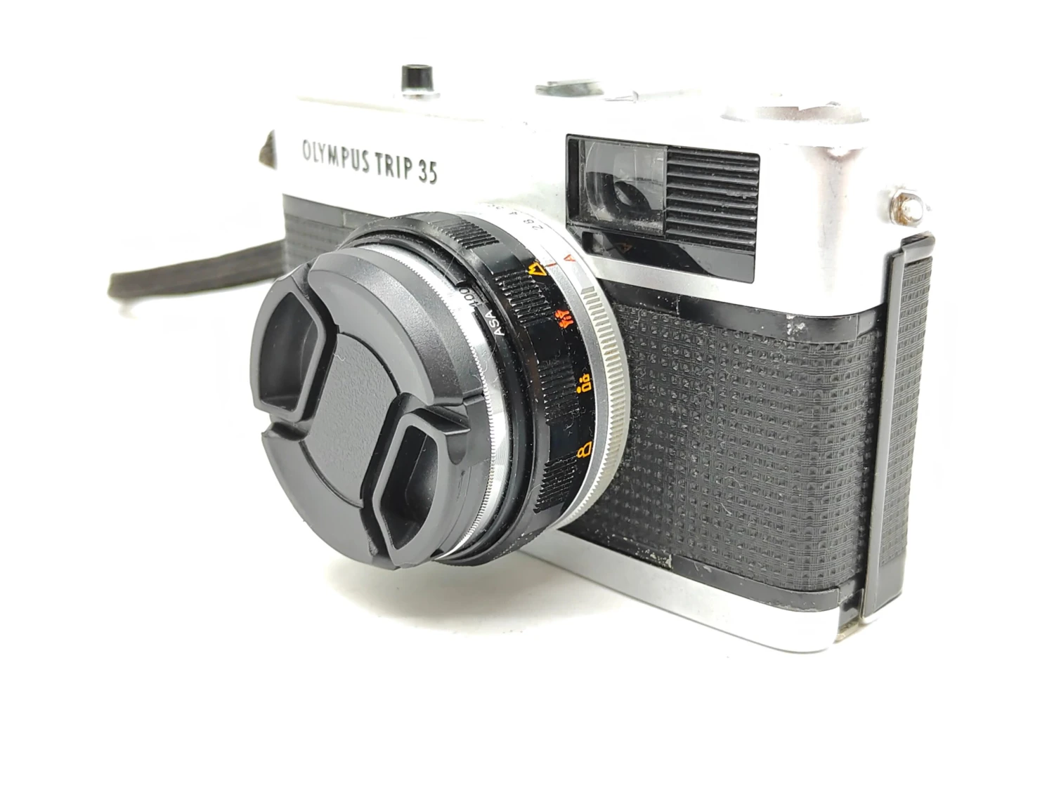 A simple modern clip-on lens cap for the Olympus Trip. Note that this fits best when the lens is focused on the Mountain icon (otherwise the inner ring of the lens protrudes a little).