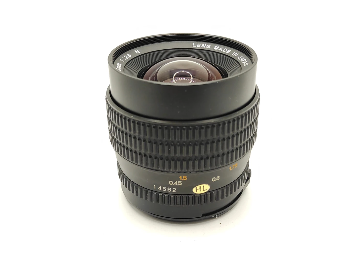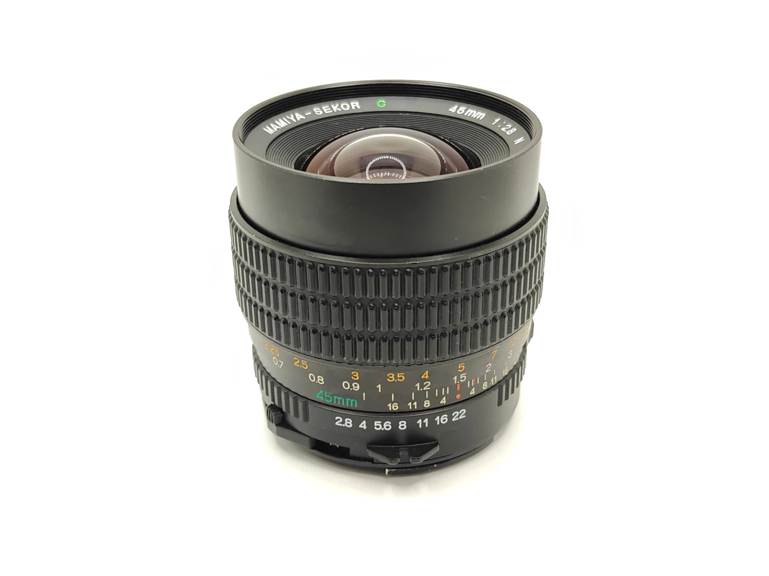 A beautiful example of the 45mm wide-angle lens for the Mamiya 645 range. Lovely clear optics, smooth focusing and snappy aperture.