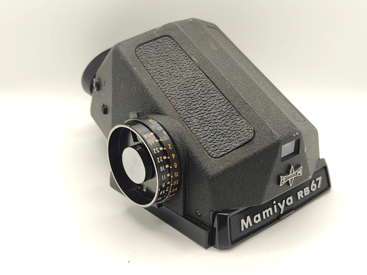 Fits on the Mamiya RB67 and provides a lovely clear view. Has a built-in match-needle CDS exposure meter.