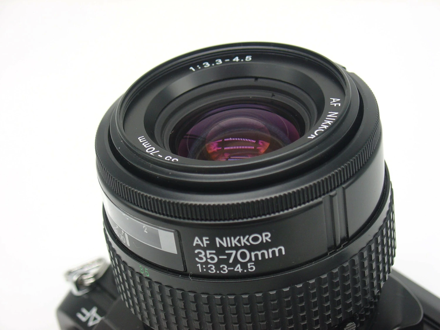 This camera comes with a choice of the original Nikon 35-70mm, or 35-105mm zoom lenses, which are both great general-use lenses spanning wide angle (35mm) and portrait (70mm) or short telephoto (105mm) focal lengths.