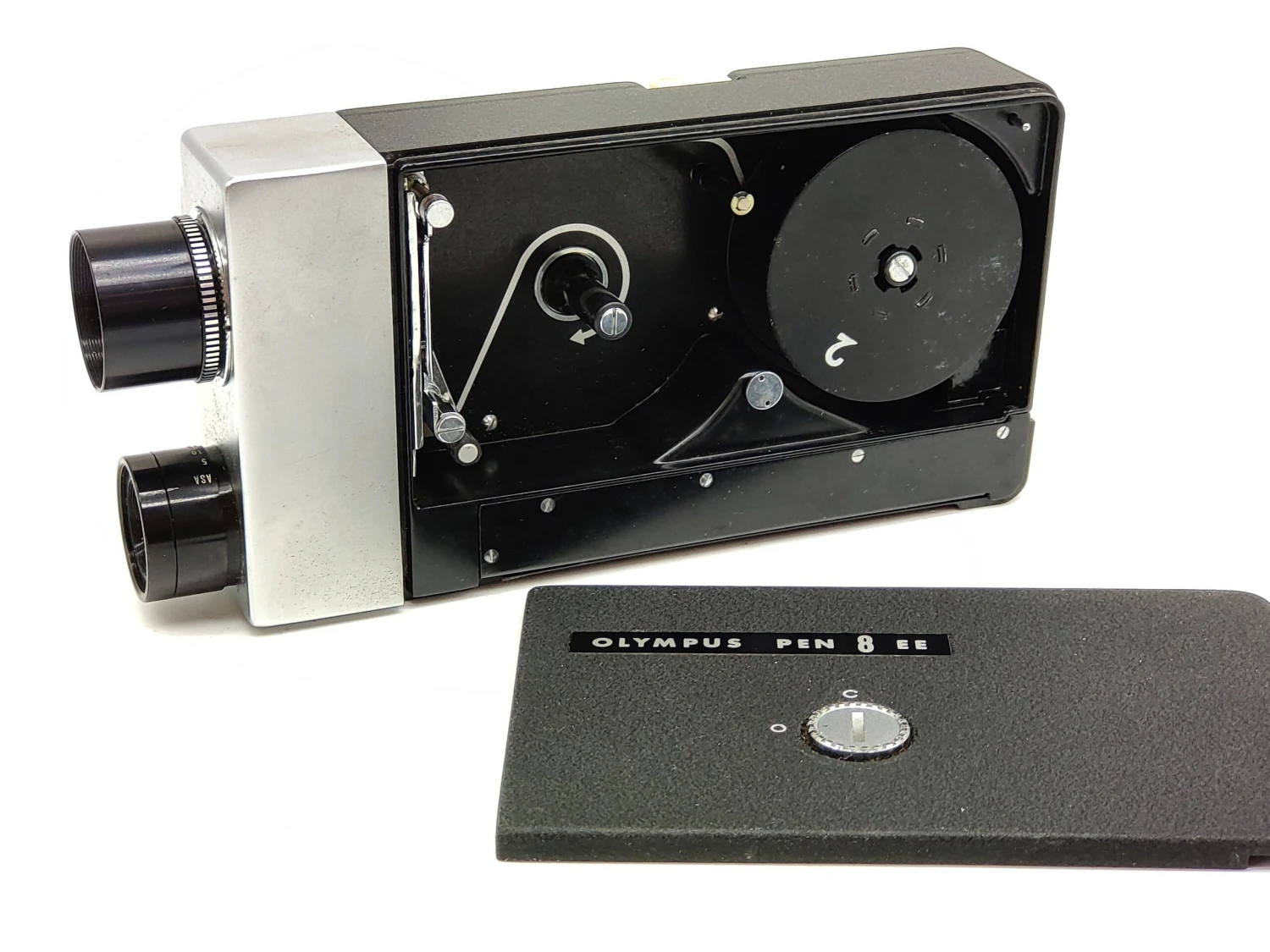 The camera runs on a clockwork motor using a clever centrifugal governor that maintains the motor at the correct speed.