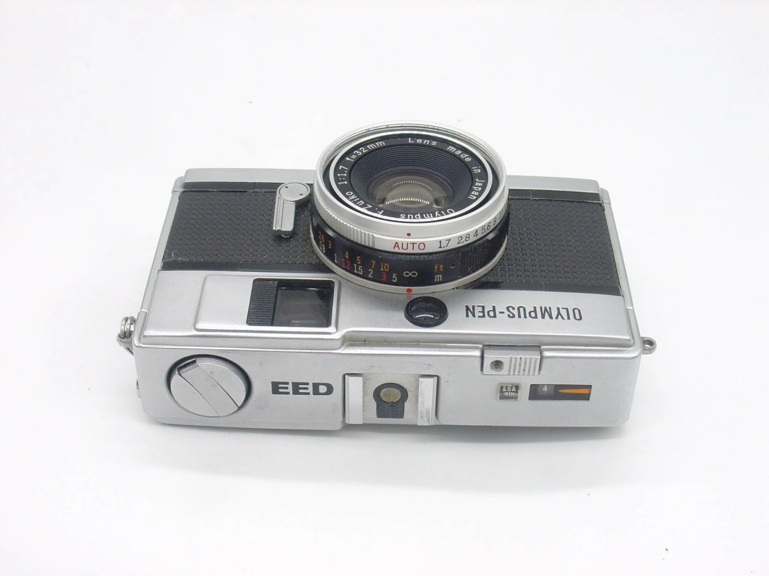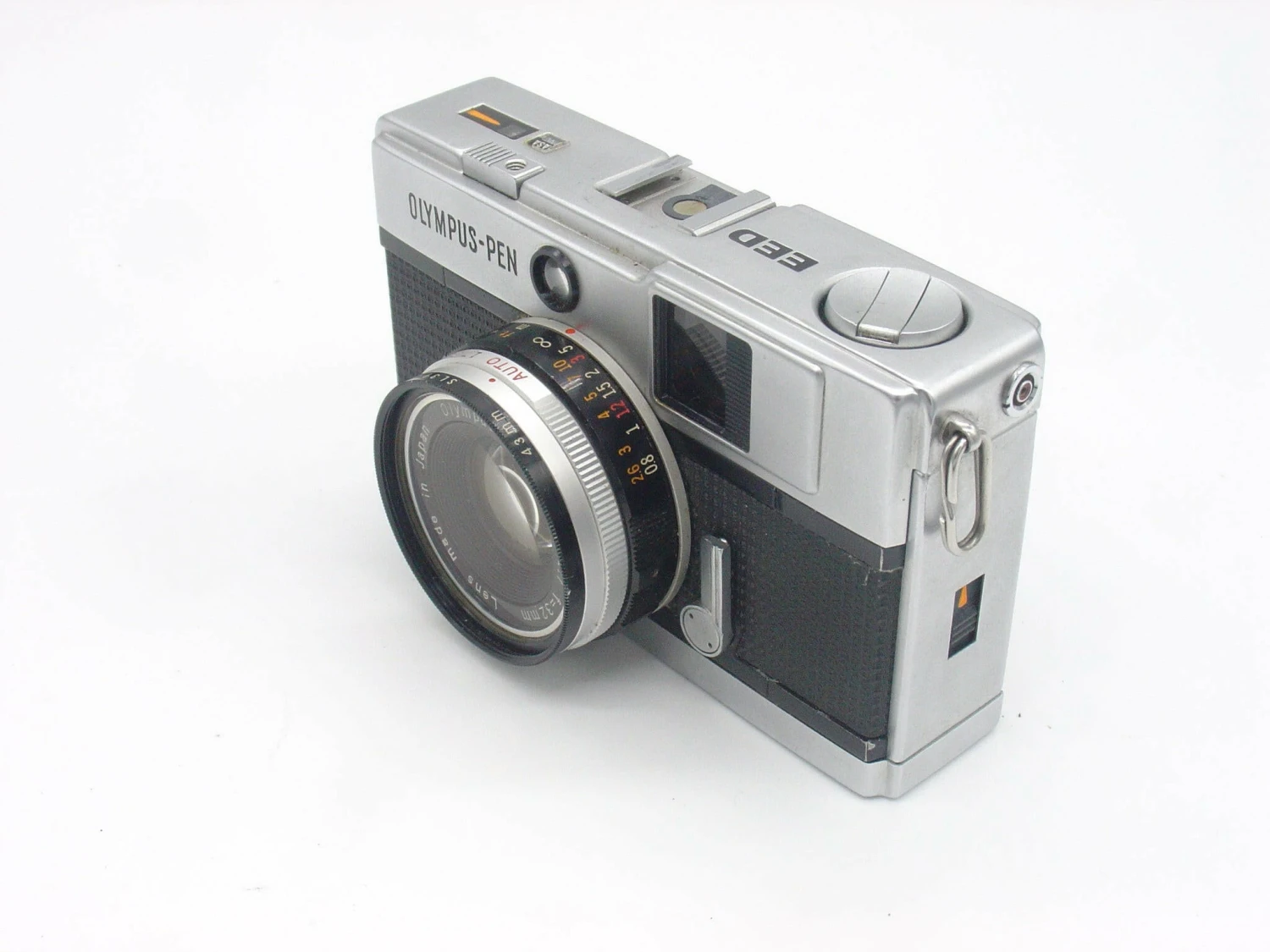 The Pen EED was produced from 1967 to 1972 and is an example of a half-frame camera so it uses standard 35mm film (available everywhere), but it takes each photo on only half of the negative. This means that you get double the photos from each film – a huge 72 photos from a regular 36 exposure film.