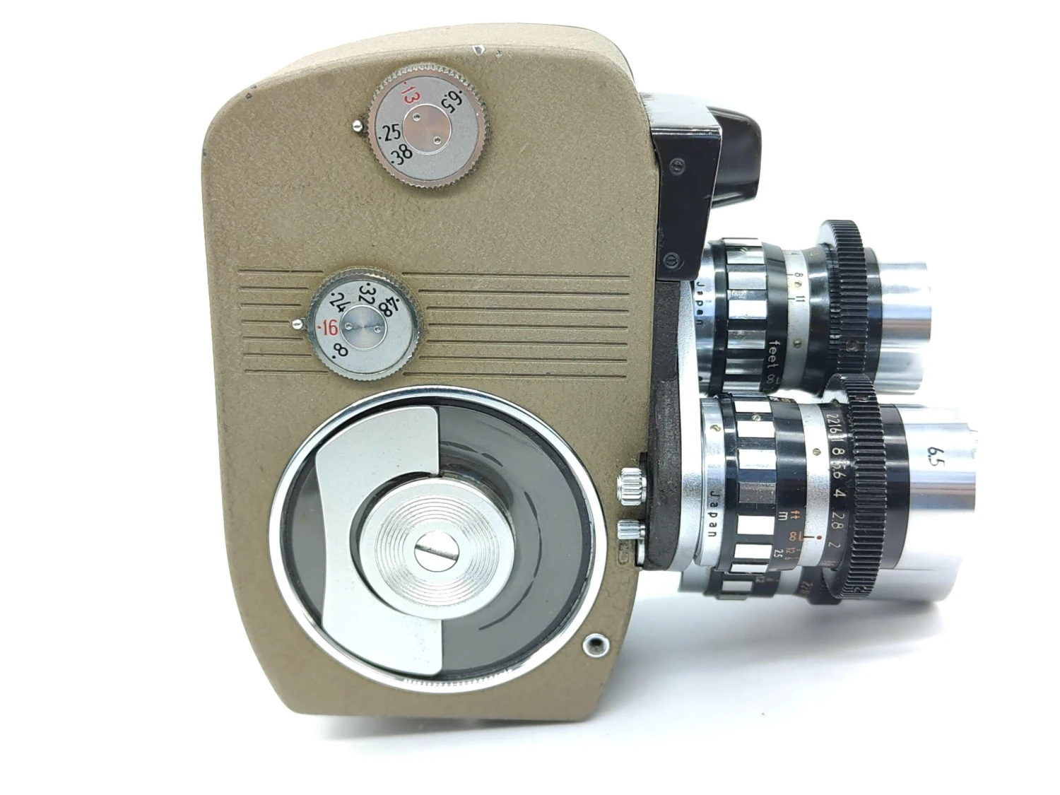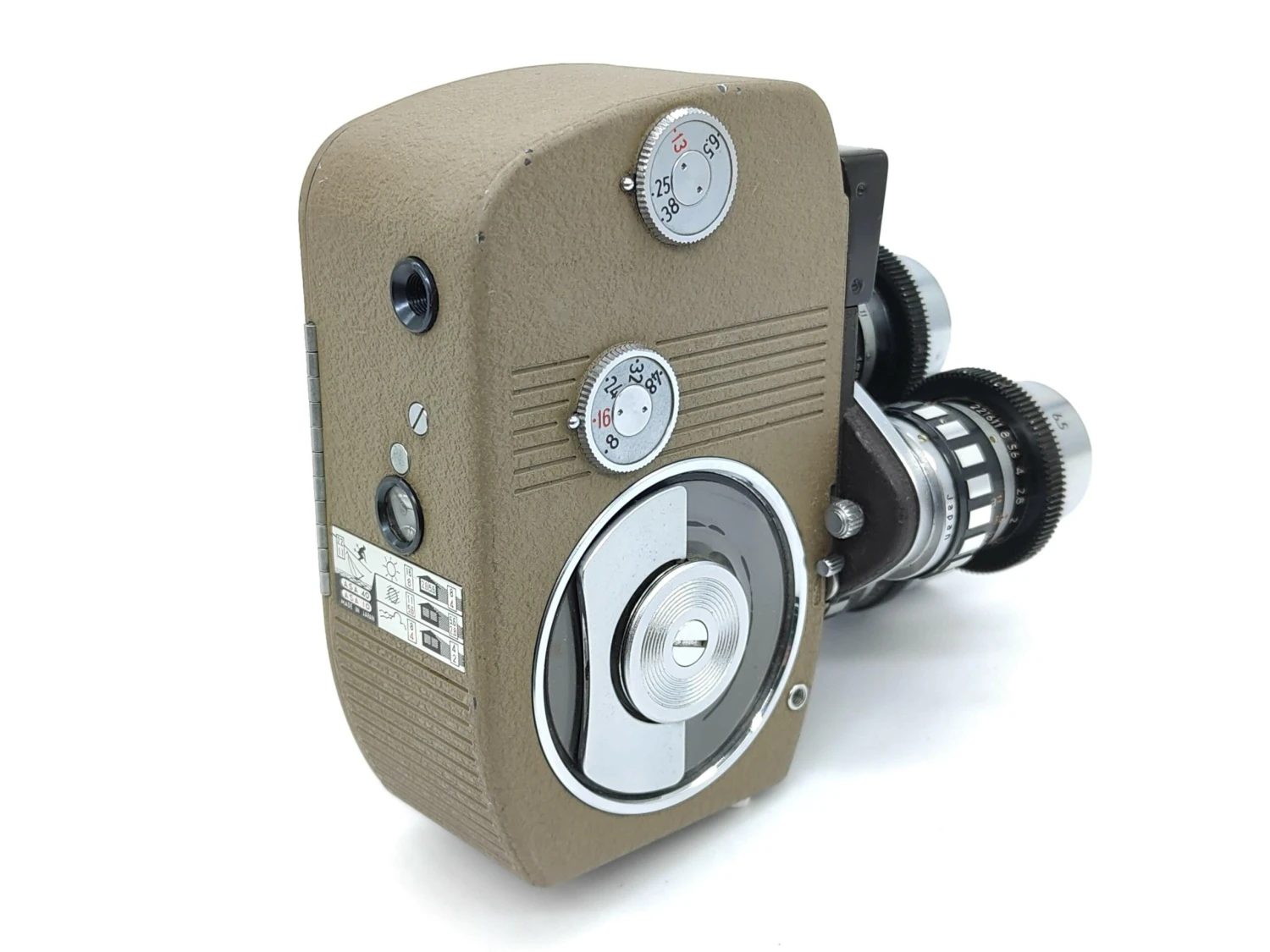 Made in the 1950s, this is a rather special 8mm cine camera. It has a full die-cast metal case, with a gold finish.
